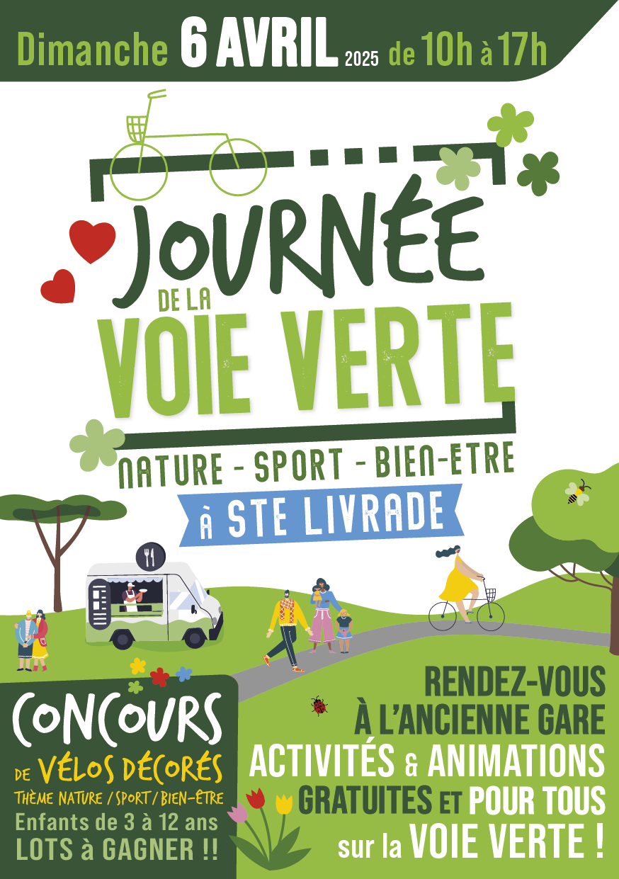 Dimanche 6 avril, le Conseil citoyen de Sainte-Livrade-sur-Lot souhaite apporter un coup de projecteur sur la voie verte livradaise, à travers une fête autour du bien vivre à Sainte-Livrade-sur-Lot, portant le message de l’importance de prendre soin de soi et de la nature. Cette fête, biennommée Fête de la voie verte, a lieu de 10 h à 17 h, avec de nombreuses animations et festivités :