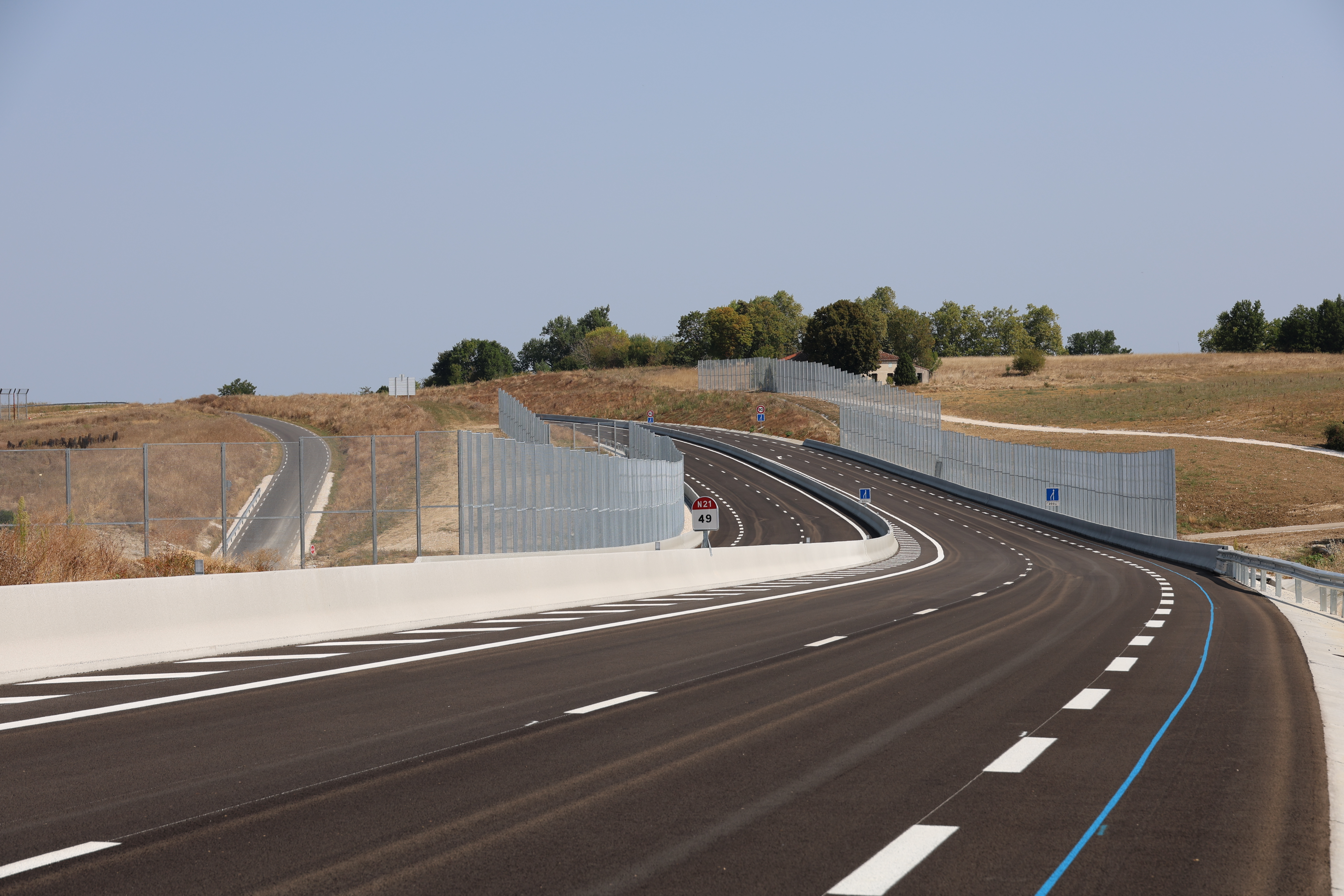 Maintenant que la 2 × 2 voies a ouvert, les regards peuvent se tourner sur la désormais ex-RN 21, dont les trois voies ne servent plus qu'au trafic vers Laroque-Timbaut et Monbalen.